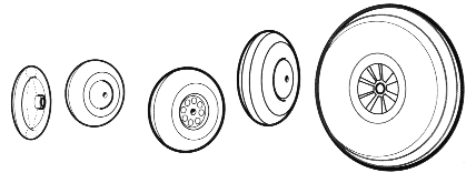TAILWHEELS. ALUMINIUM HUB, Thermoplastic rubber tyre
