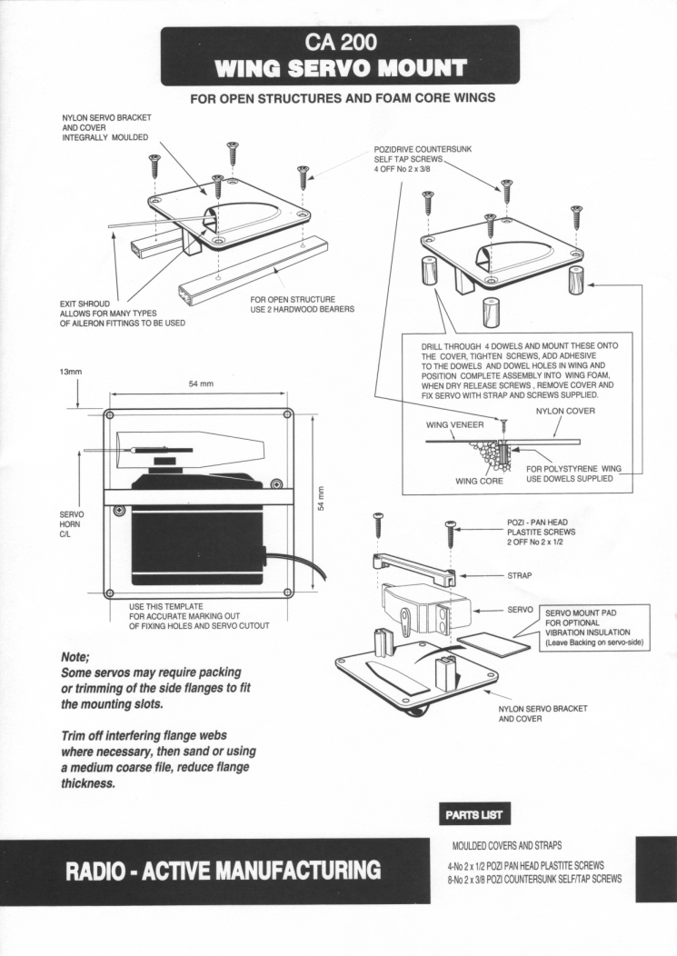Servo Mount. Available in 2 sizes for standard and Mini servos.